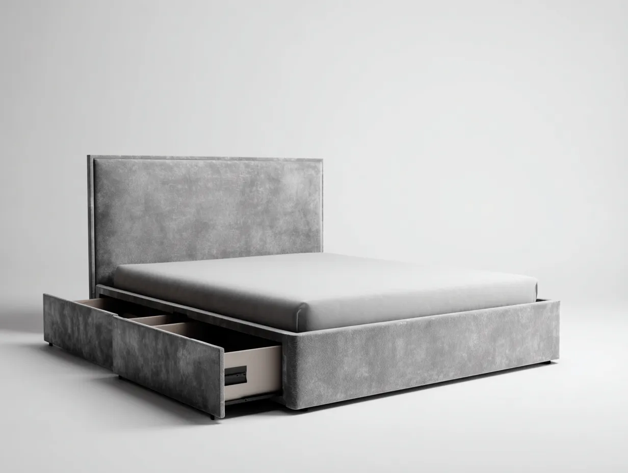 Letto matrimoniale - Velluto - 214x170x110 cm - Grigio - Design moderno
