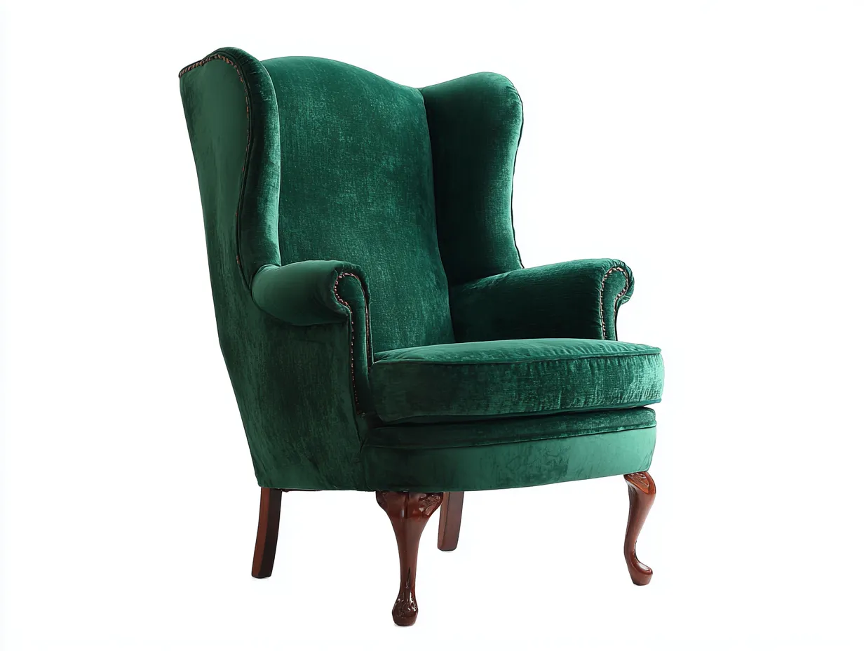 Poltrona a orecchioni - Tessuto-Legno - 82x90x108 cm - Verde - Stile classico